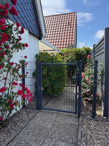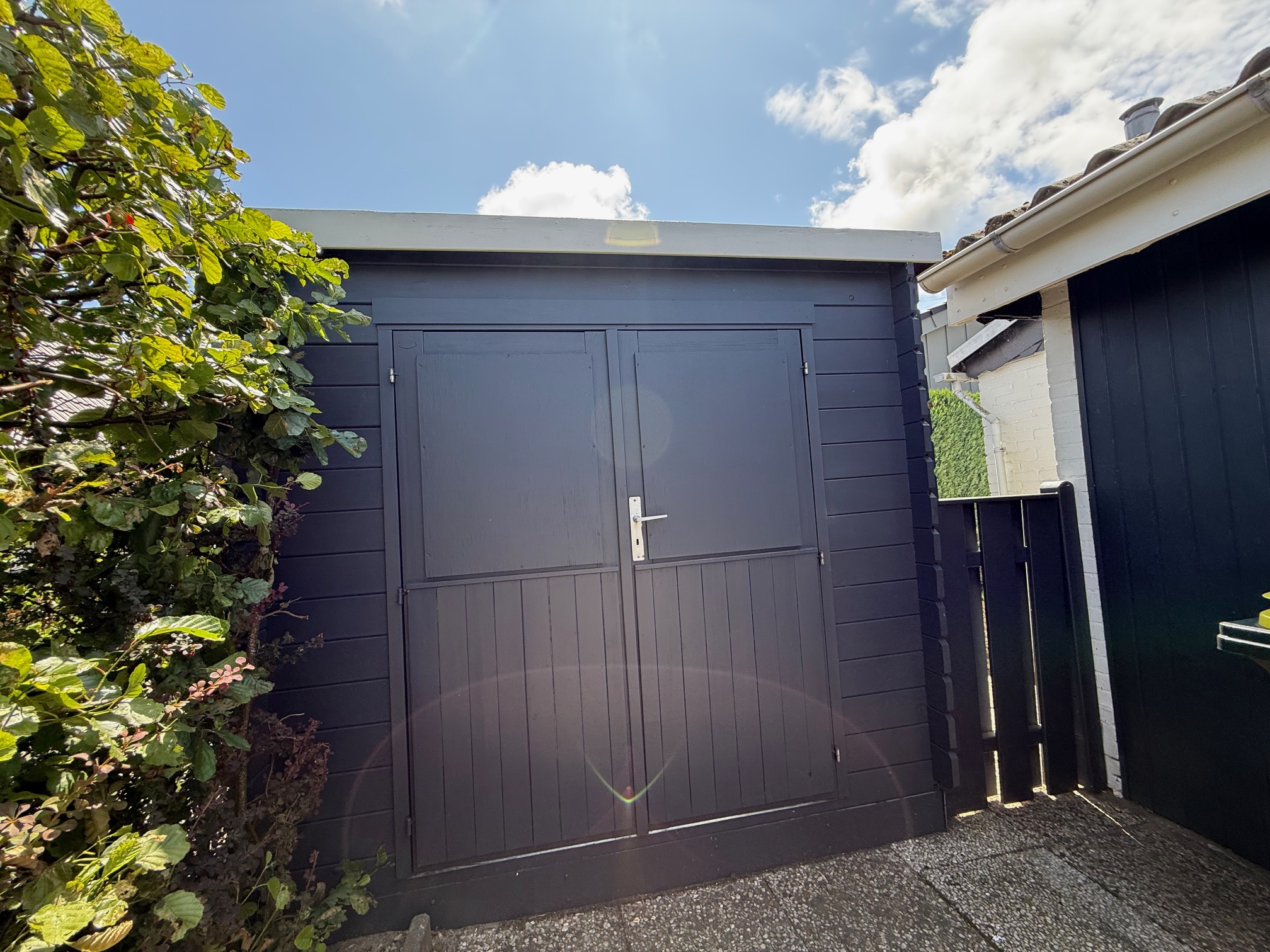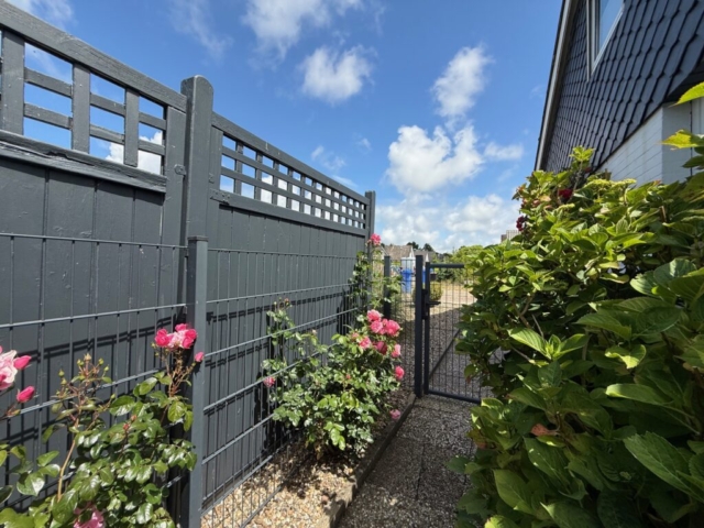 Das komplett eingezäunte Grundstück mit Sichtschutz zur Straße sorgt für Privatsphäre. Ein Gartenhaus sowie ein Stellplatz direkt am Haus bieten zusätzlichen Komfort.
