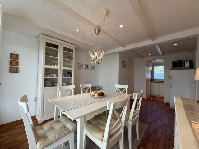 Das Haus ist mit Isolierverglasung ausgestattet. Im Erdgeschoss wurde ein moderner Designboden im Esszimmerbereich und Teppichboden im Wohnzimmer verlegt, das Obergeschoss verfügt ebenso über Teppichboden. Wohn- und Esszimmer, beide Badezimmer sowie das Obergeschoss sind vollständig möbliert. Die Warmwasserversorgung erfolgt über Durchlauferhitzer. Die Gas-Außenwandheizung stammt aus dem Jahr 1972.